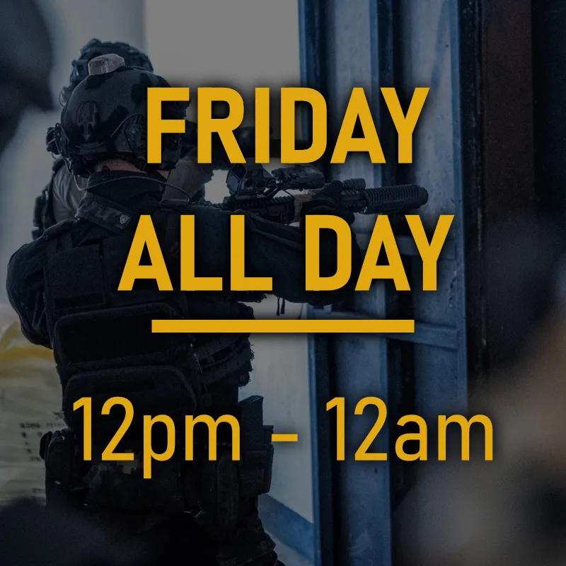 You must be at least 10 years of age to participate in an airsoft session. If you are below the age of 10 you will not be allowed to play. Physical contact and dangerous play will not be tolerated. Do not shoot at the ceiling, lights, sprinkler heads, cameras, or speakers. Airsoft guns must have a barrel cover on the muzzle when not on the field with the magazine out, and pistols must be holstered and have the magazine out. Do not fire in the staging area, only fire/test/clear your airsoft guns in the chronograph area(with permission from the referees) or on the field. All AEGs, GBBR, Spring, Pistols, and GNB airsoft guns must chrono at or below 380 FPS with a .20g BB and fire on semi-auto to be used on the field, all HPA airsoft guns must chrono at or below 320 FPS with a .20g BB and be semi-locked to be used on the field. Eye protection must be worn at all times on the field and in chrono. Eye protection must meet or exceed ANSI rating Z87.1 for use on our field. If you bring non-rated eye protection for use it will be tested by field staff members, we are not liable for damage caused by testing. If you are under 18 years of age, full face protection (such as a paintball mask) is required which consists of rigid protection which fully covers the mouth, cheeks, and nose. Do not blind fire (shooting around corners, out doors/windows, without the ability to physically see your target). Do not climb over any obstacles on the field, do not jump, skip, mantle, or any other acrobatic maneuver through windows, doors, etc. If you are hit by another player with a BB, whether they’re your opponent or teammate, you are out and must return to the designated area. If anything you are wearing is hit, you are considered out and must return to the designated area. If you are unsure whether are not you are hit, call it and return to the designated area. Referees and staff have the right to remove you from the field & facility at any time without refund if necessary. Decisions by the referees and staff are final, do not argue with them.